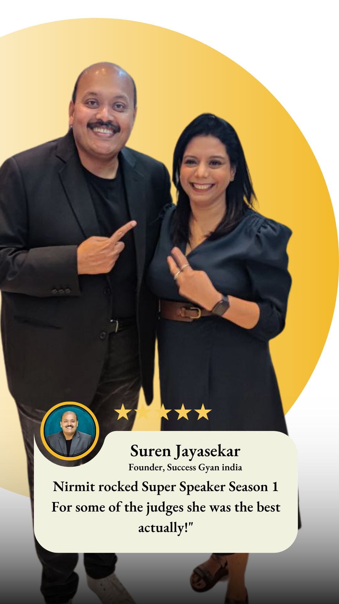Nirmit Sinha Goel, a motivational speaker and trainer with 18 years of experience, stands as a beacon in public speaking. Her journey is marked by significant achievements, including coaching Mr. Gopalkrishnan for the “Life Wheel” event, showcasing her transformative coaching abilities. Nirmit’s multifaceted journey reflects her personal success and her commitment to mentoring others and making a lasting impact in public speaking and training.